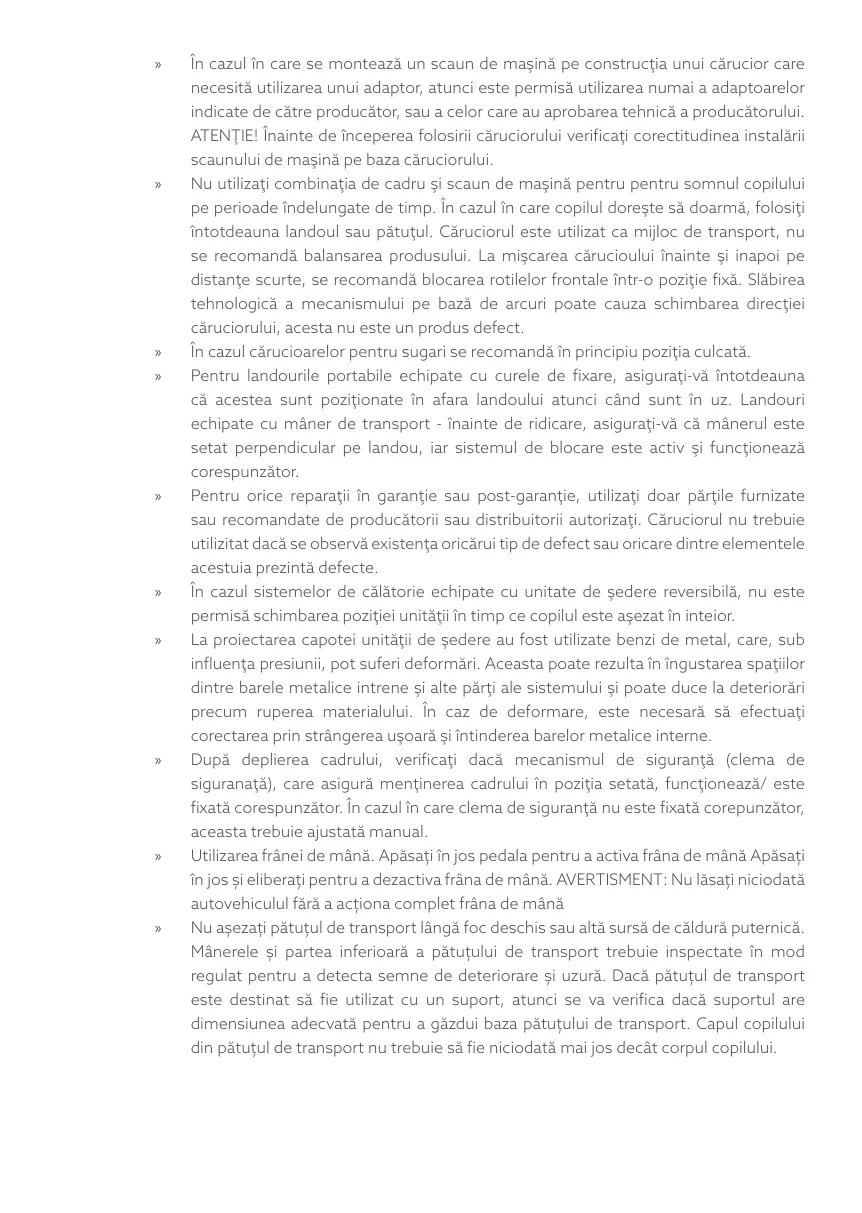 sau recomandate de producătorii sau distribuitorii autorizaţi. Căruciorul nu trebuie