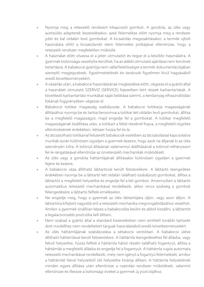 betartásra. A babakocsi gyártója nem vállal felelősséget a termék dokumentációjában