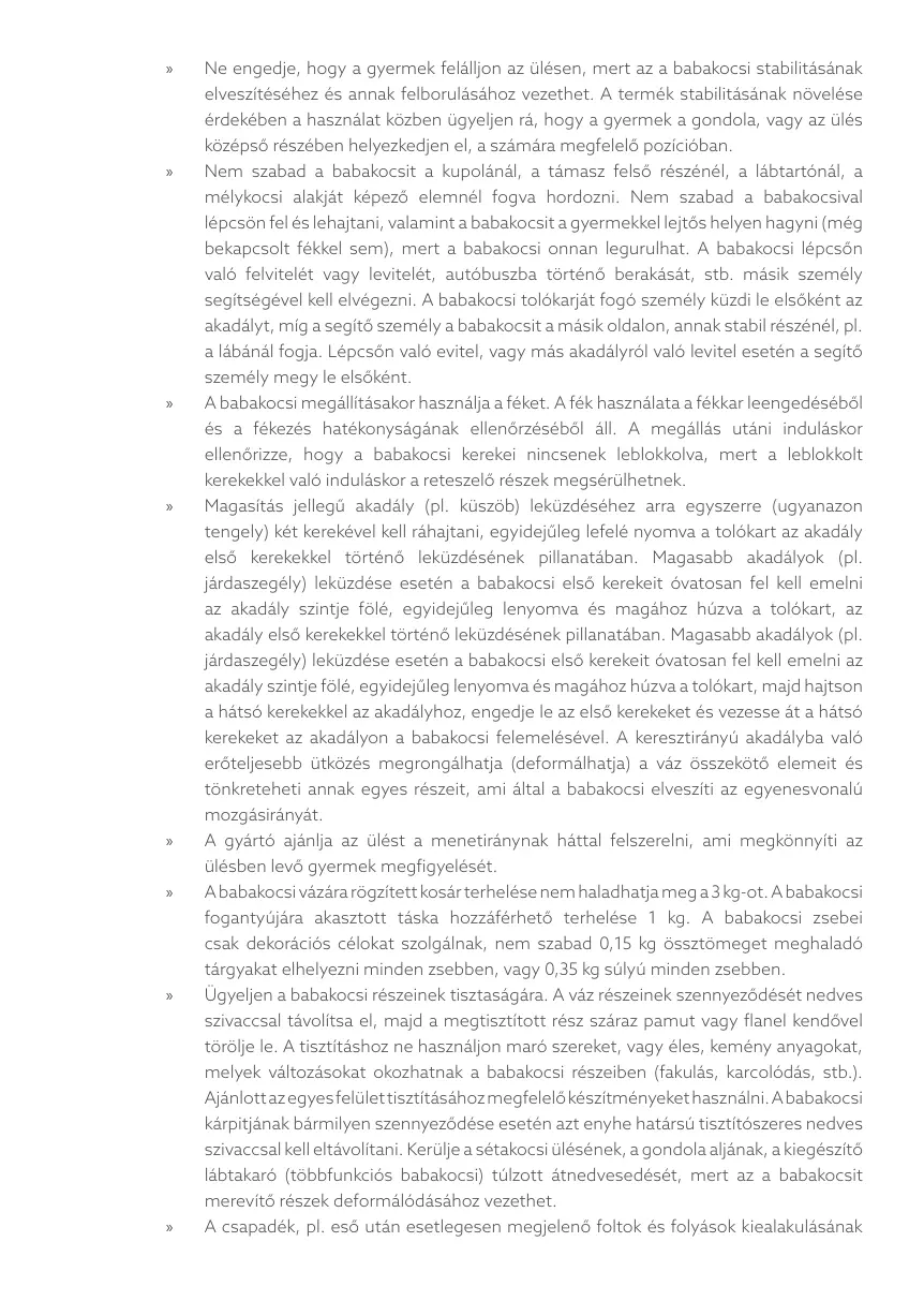 » A babakocsi vázára rögzített kosár terhelése nem haladhatja meg a 3 kg-ot. A babakocsi