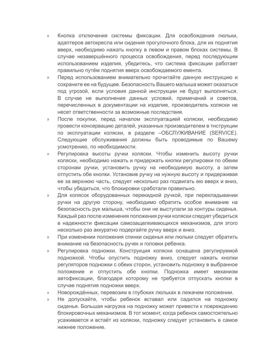 по эксплуатации коляски, в разделе –ОБСЛУЖИВАНИЕ (SERVICE).