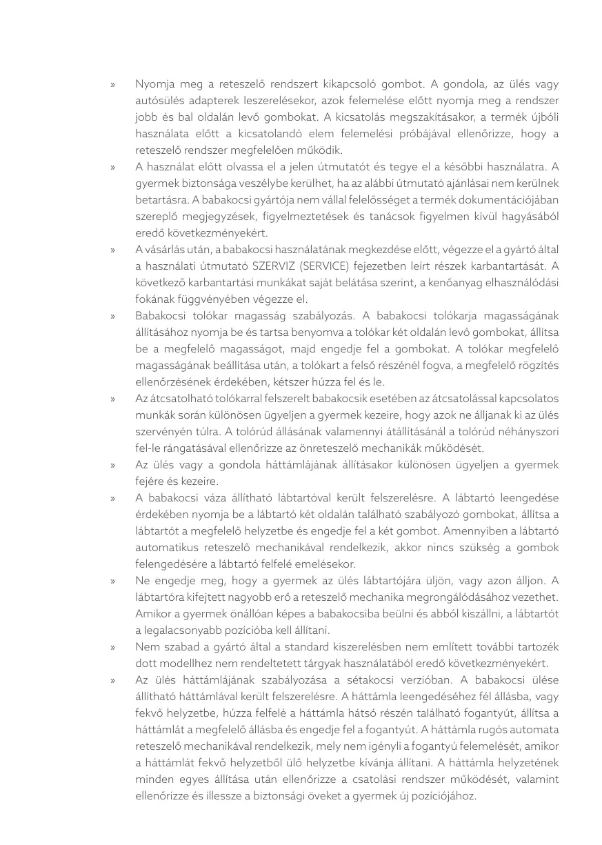betartásra. A babakocsi gyártója nem vállal felelősséget a termék dokumentációjában