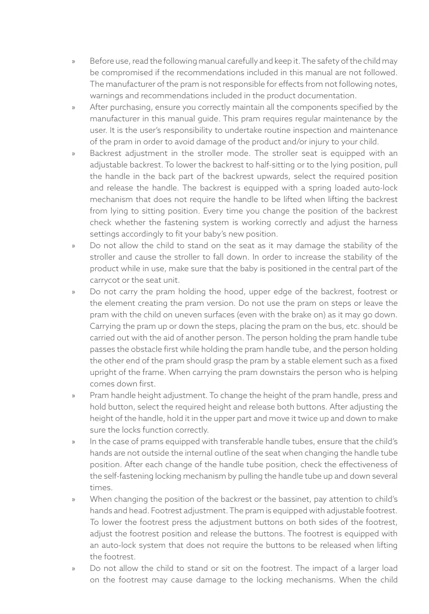 of the pram in order to avoid damage of the product and/or injury to your child.