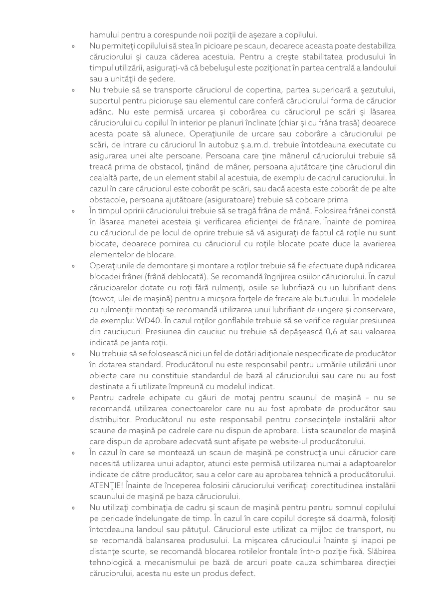 » Nu trebuie să se transporte căruciorul de copertina, partea superioară a şezutului,