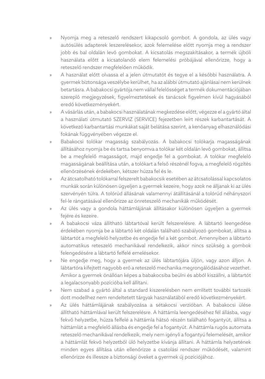 betartásra. A babakocsi gyártója nem vállal felelősséget a termék dokumentációjában