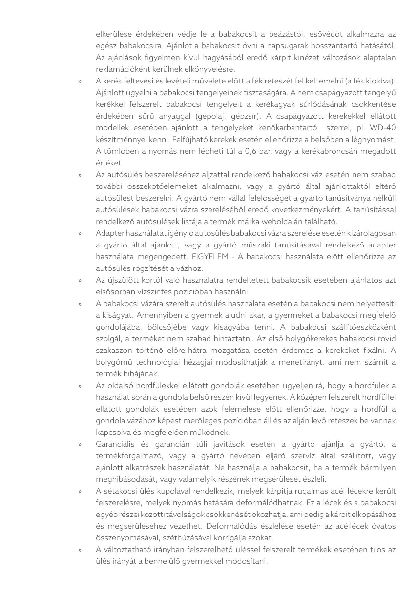 elkerülése érdekében védje le a babakocsit a beázástól, esővédőt alkalmazra az