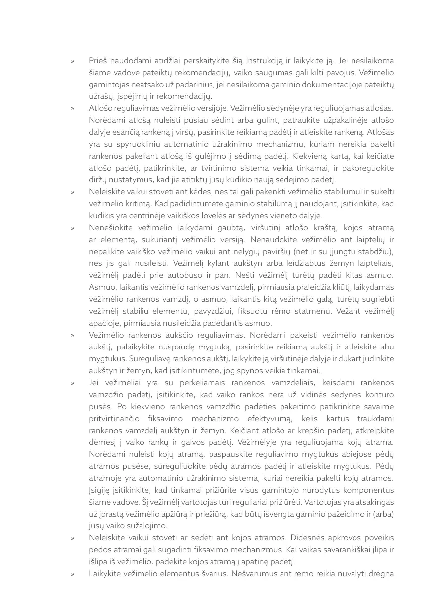 šiame vadove pateiktų rekomendacijų, vaiko saugumas gali kilti pavojus. Vėžimėlio