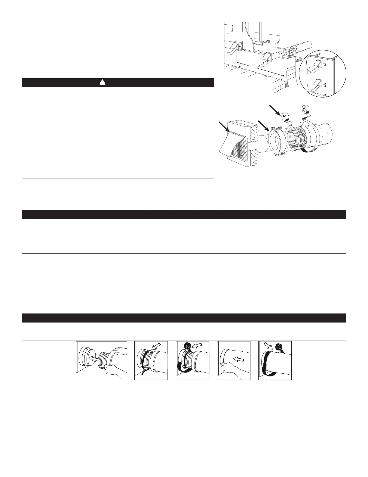 To avoid transmission of vibrations, always use a 12-inch section of exible duct to connect rigid ducts to the unit. To