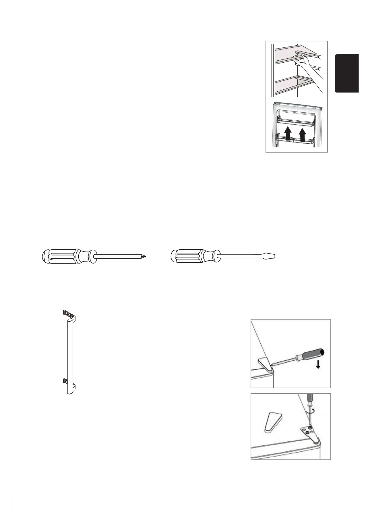 • Bewaar alle verwijderde onderdelen om de deur later opnieuw te monteren.