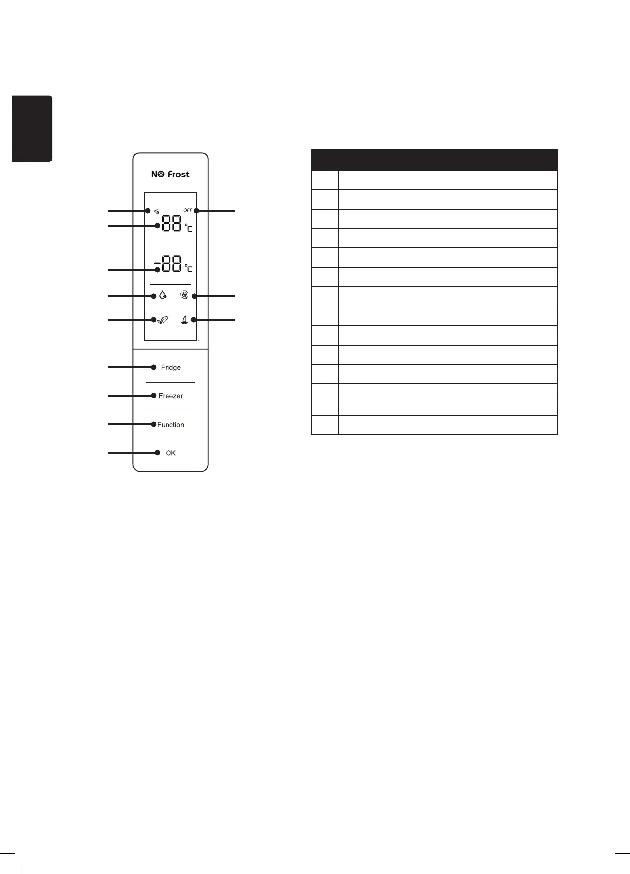 de temperatuur met -1 graad Celsius, te zien op het display (2). De minimaal in te stellen koelkasttemperatuur is 2
