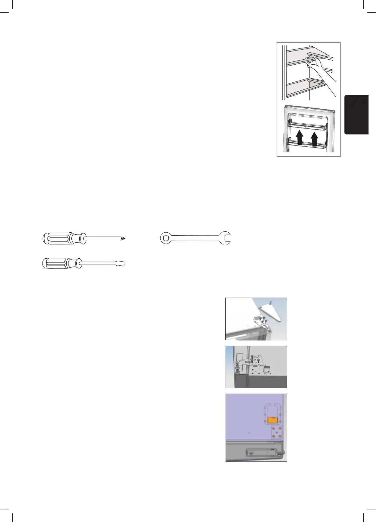 • To remove the door, the appliance must be tilted backwards. We recommend doing this with two people. Rest
