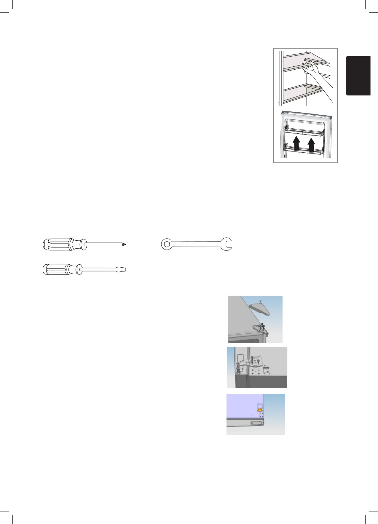 • Bewaar alle verwijderde onderdelen om de deur later opnieuw te monteren.