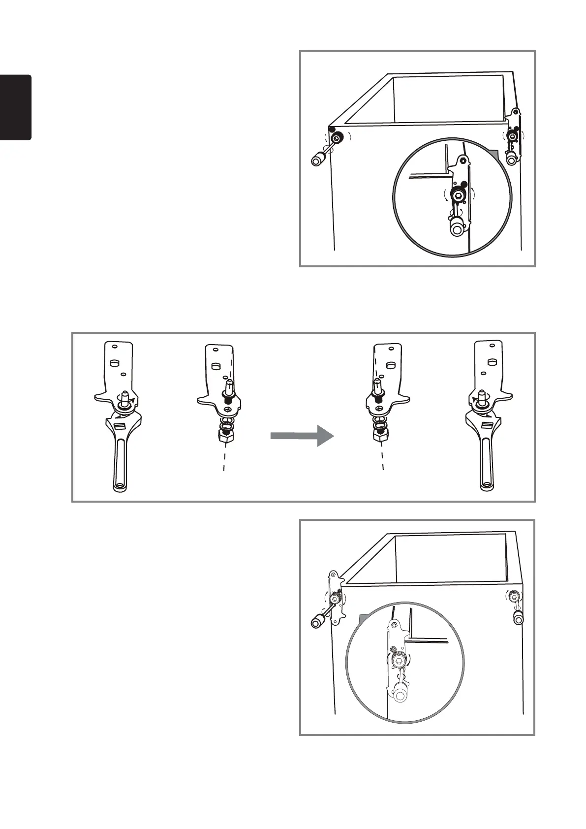 5. Demonteer de onderste scharnierpen. Draai de beugel om. Schroef de onderste scharnierpen weer vast aan