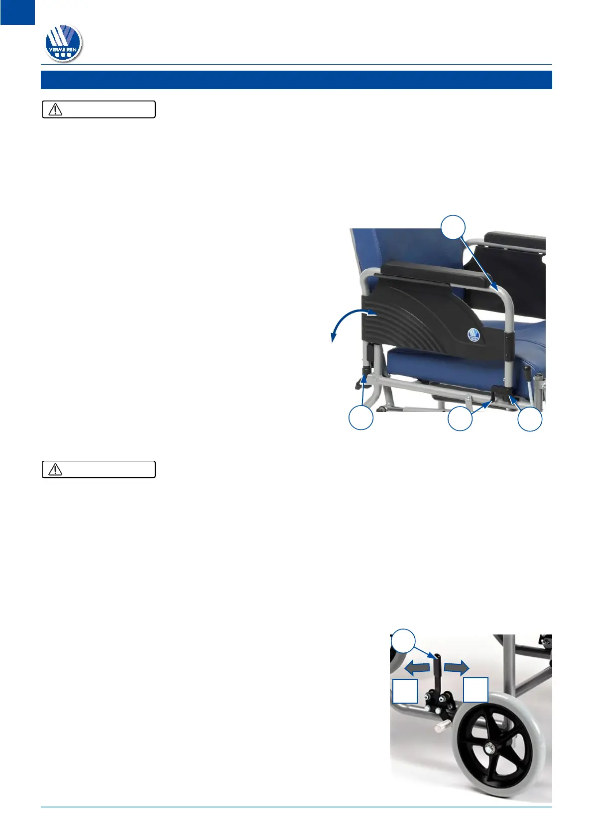 Your chair is equipped with two manually-operated parking brakes. These brakes are intended to