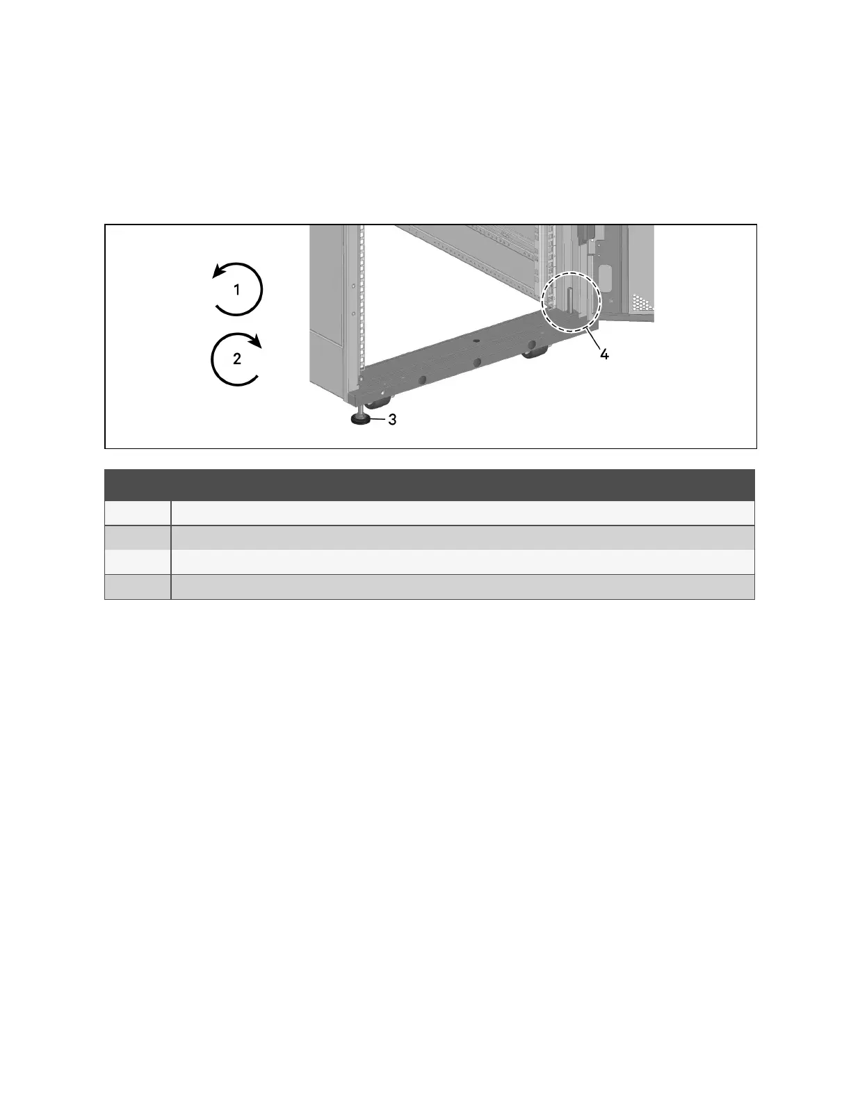 Leveling feet are preinstalled at the factory. They are easily accessible in the front and rear of the rack frame.
