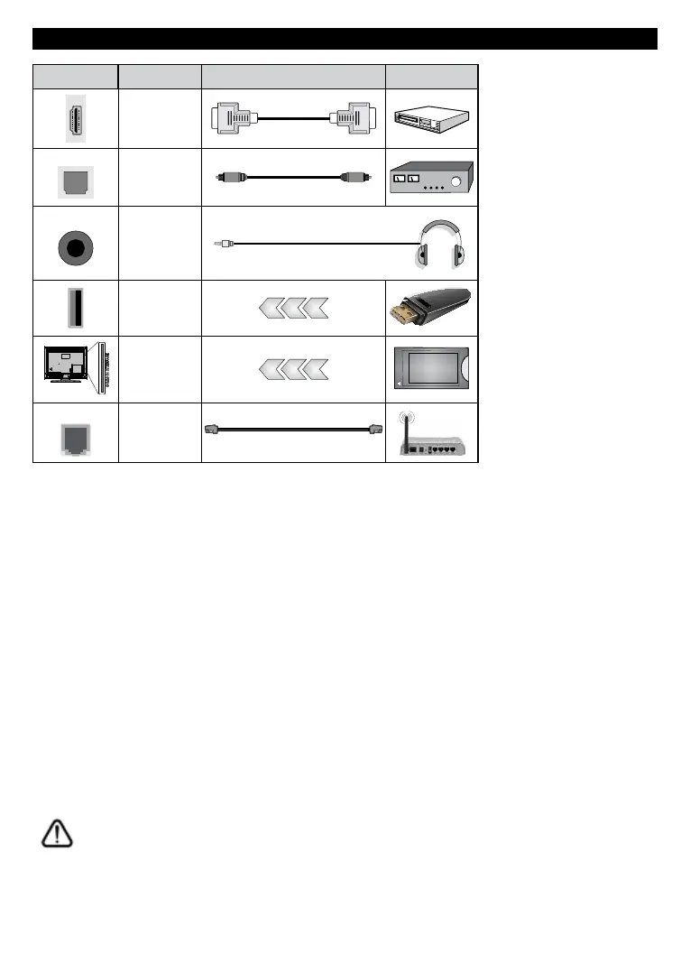 TV'nize bir cihaz bağlamak isterseniz, herhangi bir bağlantı yapmadan önce hem TV'nin hem de cihazın kapalı olduğundan