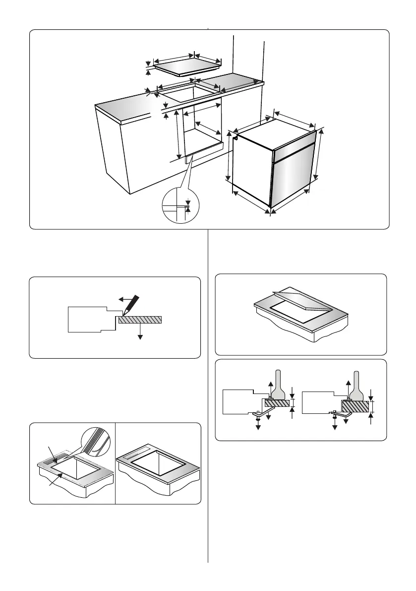 • Place the hob in the cut out. Mark the