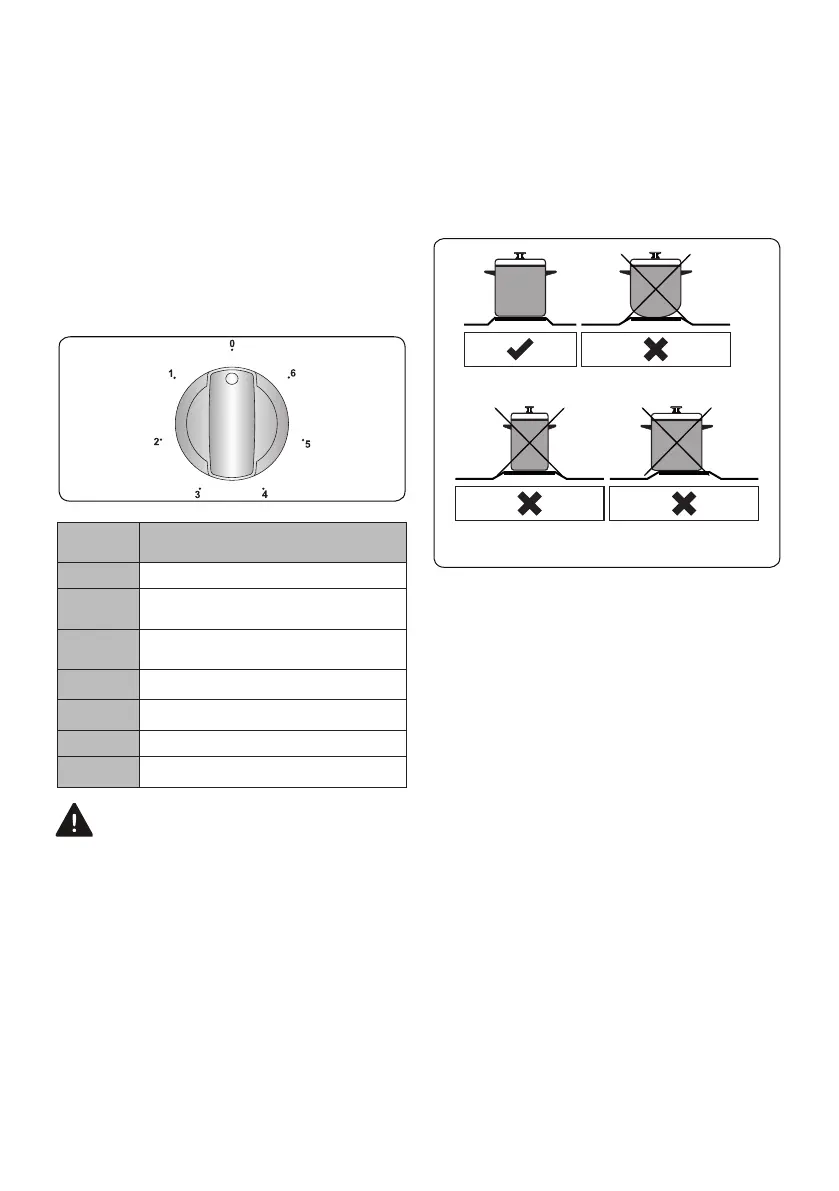 • Never use a pan with a smaller or larger