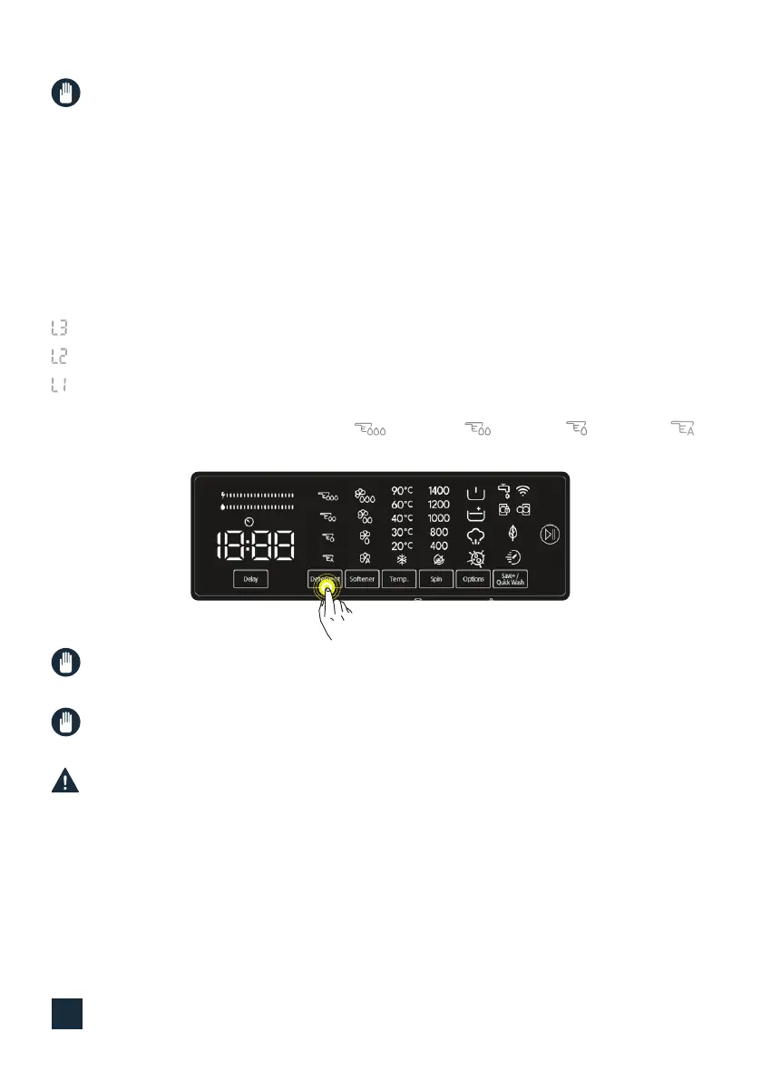 dávkování pracího prostředku zvolit hladinu , hladinu 3, hladinu 2, hladinu 1 a v