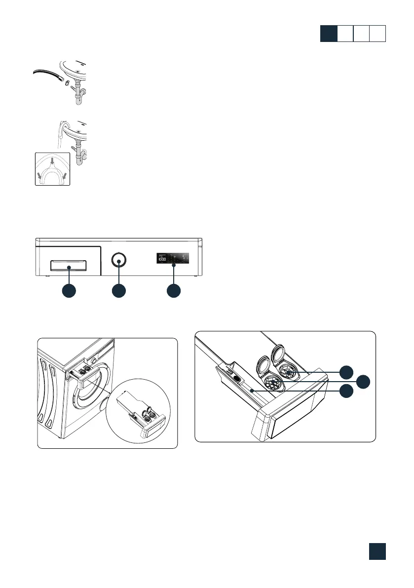 • Nie wkładać węża odpływowego pralki do pojemnika, wiadra lub wanny.