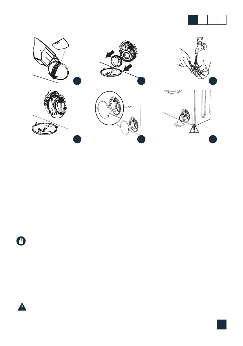• Przed otwarciem pokrywy ltra należy umieścić pojemnik pod pokrywą, aby zebrać pozostałą