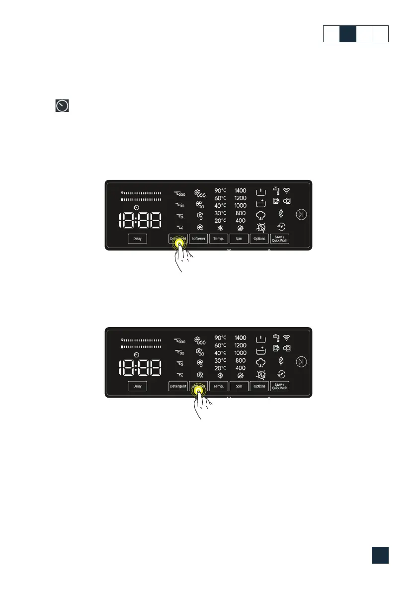once will go o on the electronic display, press “Start/ Pause” key to start the washing cycle.