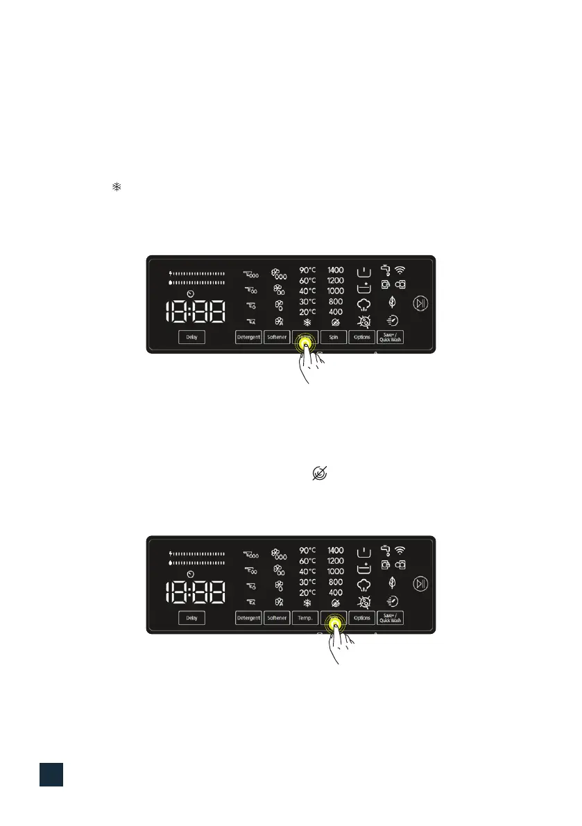 • If you have skipped the washing water temperature you wanted to set, keep pressing the washing