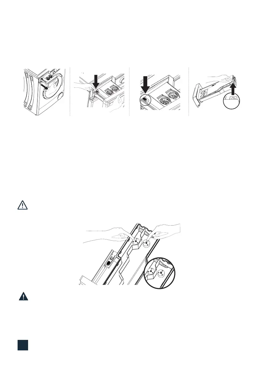 • Keep on pulling the detergent drawer as much as possible by pressing the area shown in the