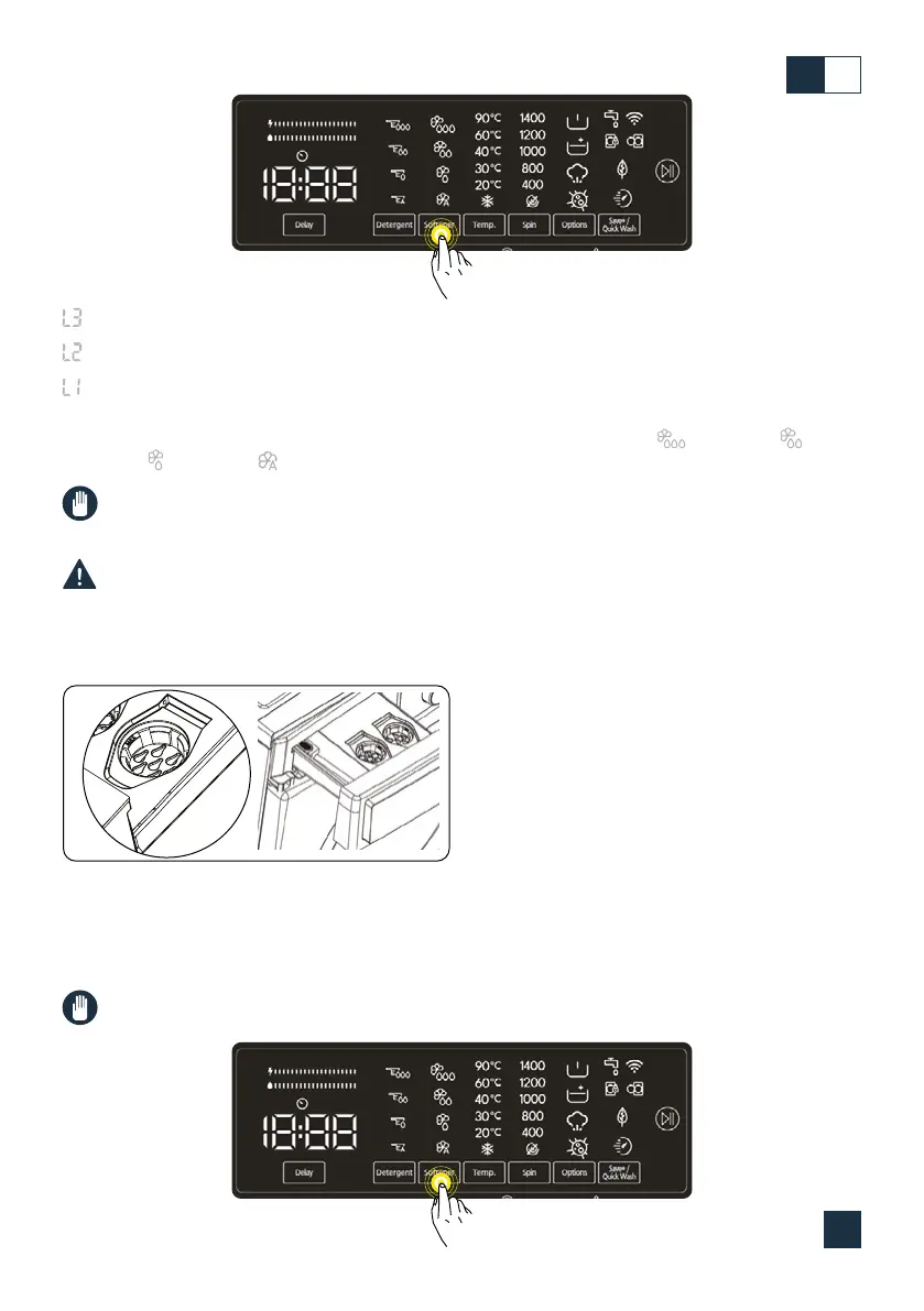 UWAGA: Funkcja dozowania zmiękczacza jest włączona kiedy włączysz pralkę.