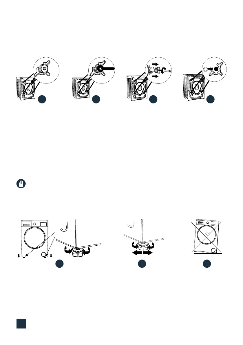 1. Before operating the washing machine, remove the 4 transit bolts and rubber spacers from