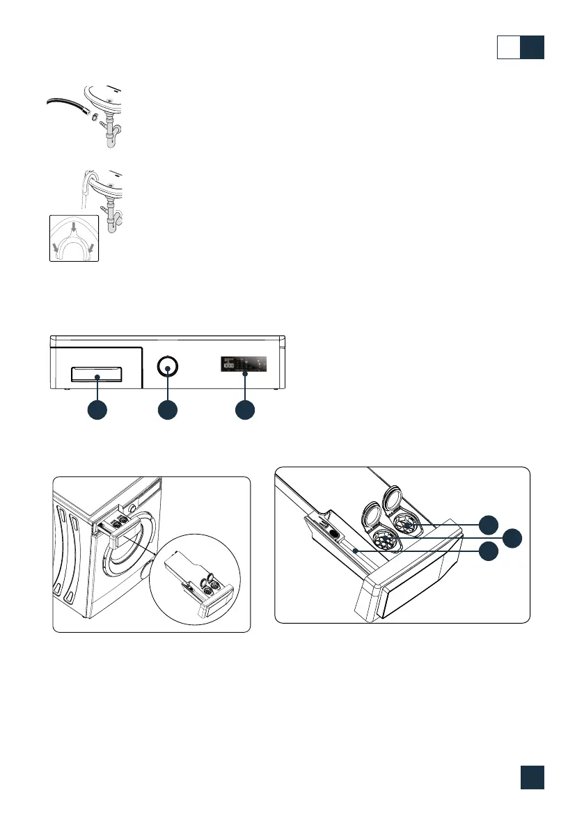 • Connect the water drain hose to a standpipe or to the outlet elbow of a
