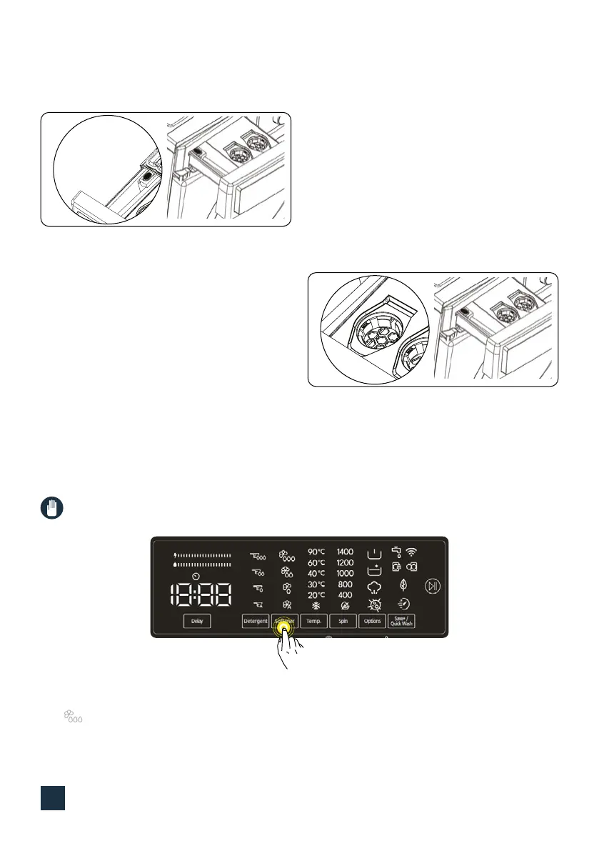 NOTE: The softener dosage function is enabled when you switch on the machine.