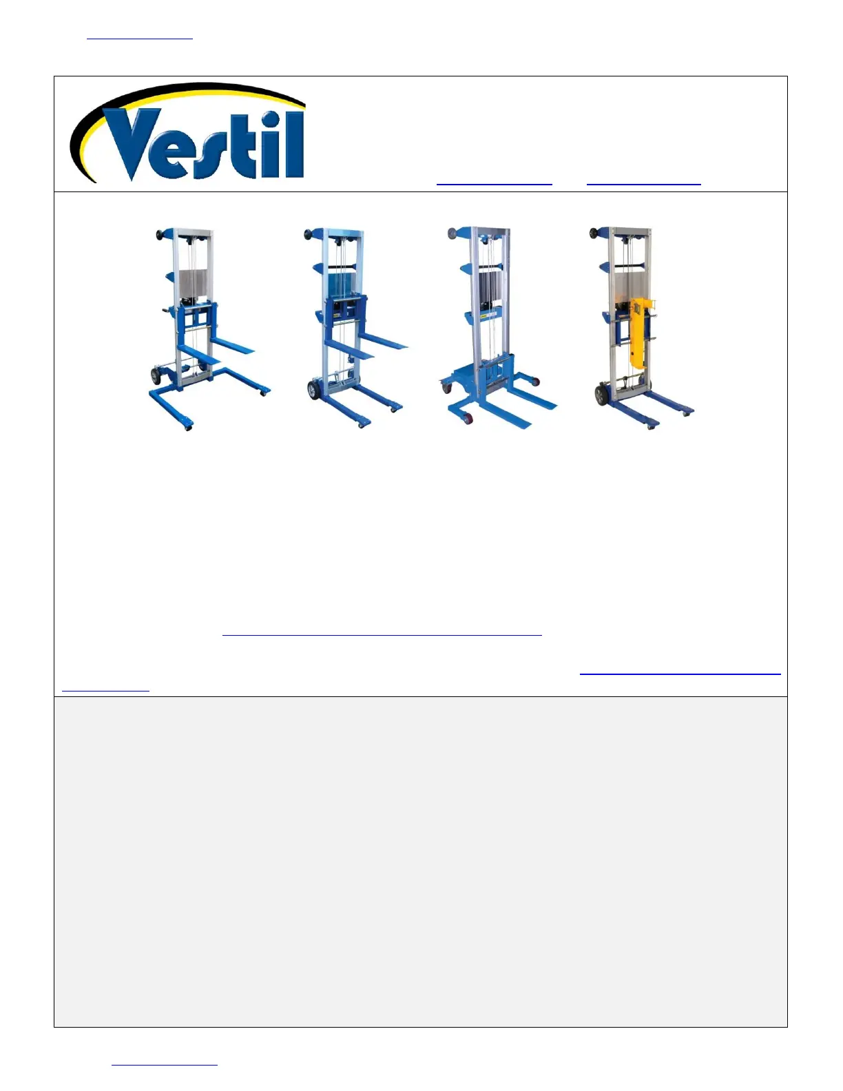 Additional copies of this instruction manual may be downloaded from https://www.vestil.com/page-