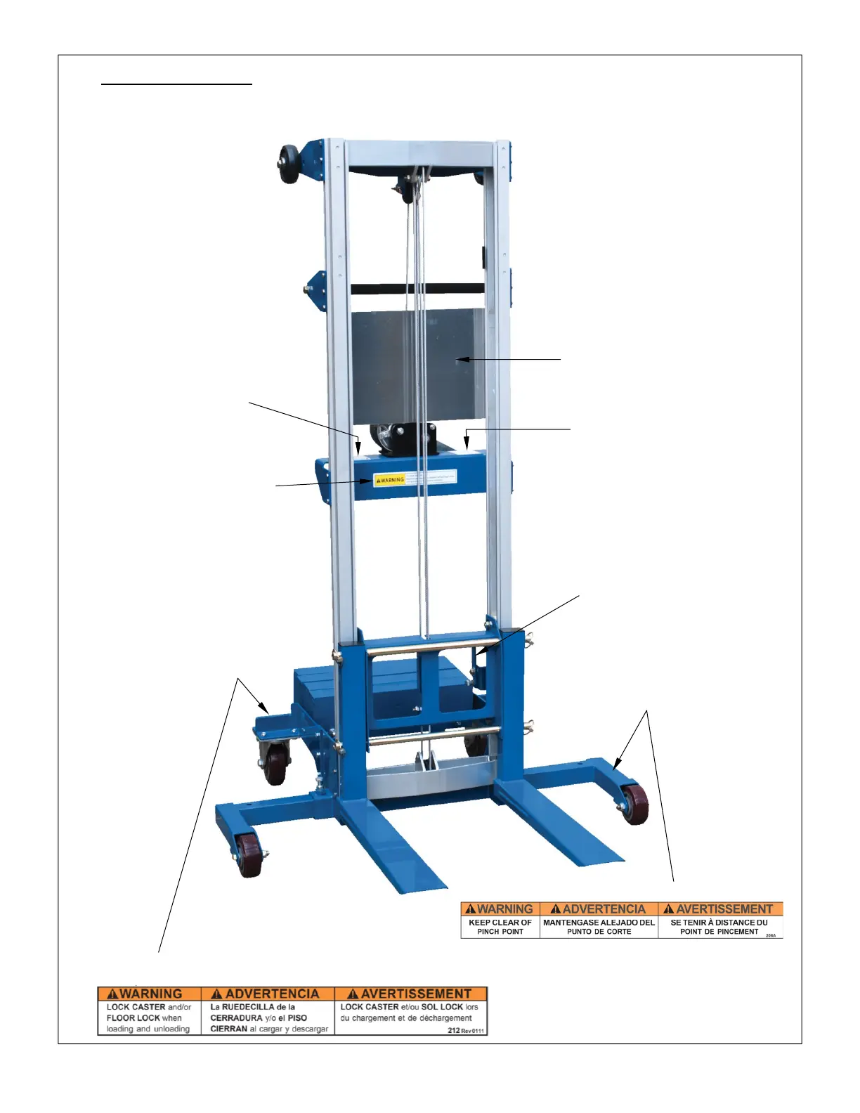 Only use the A-Lift if ALL labels are readable and undamaged. Contact Vestil for replacement labels.