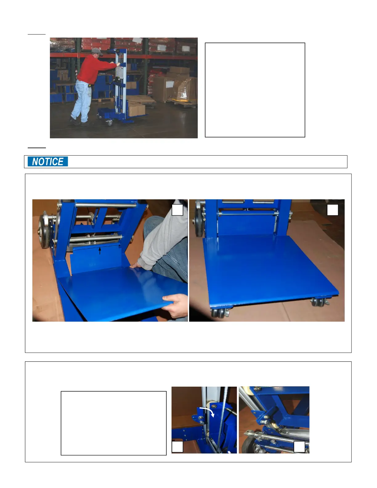 [NOTE: To use the deck, the forks must be attached to the carriage right-side up, as shown below & on p. 3.]