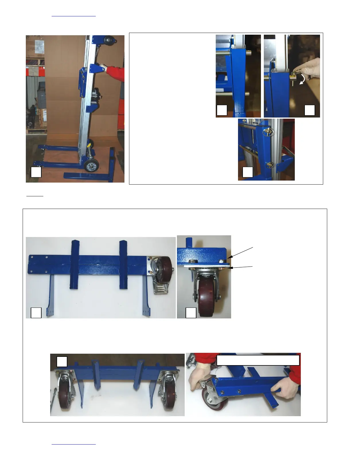UStep 1U : Attach the 5 inch swivel casters (19) to the counterweight base weldment (20).