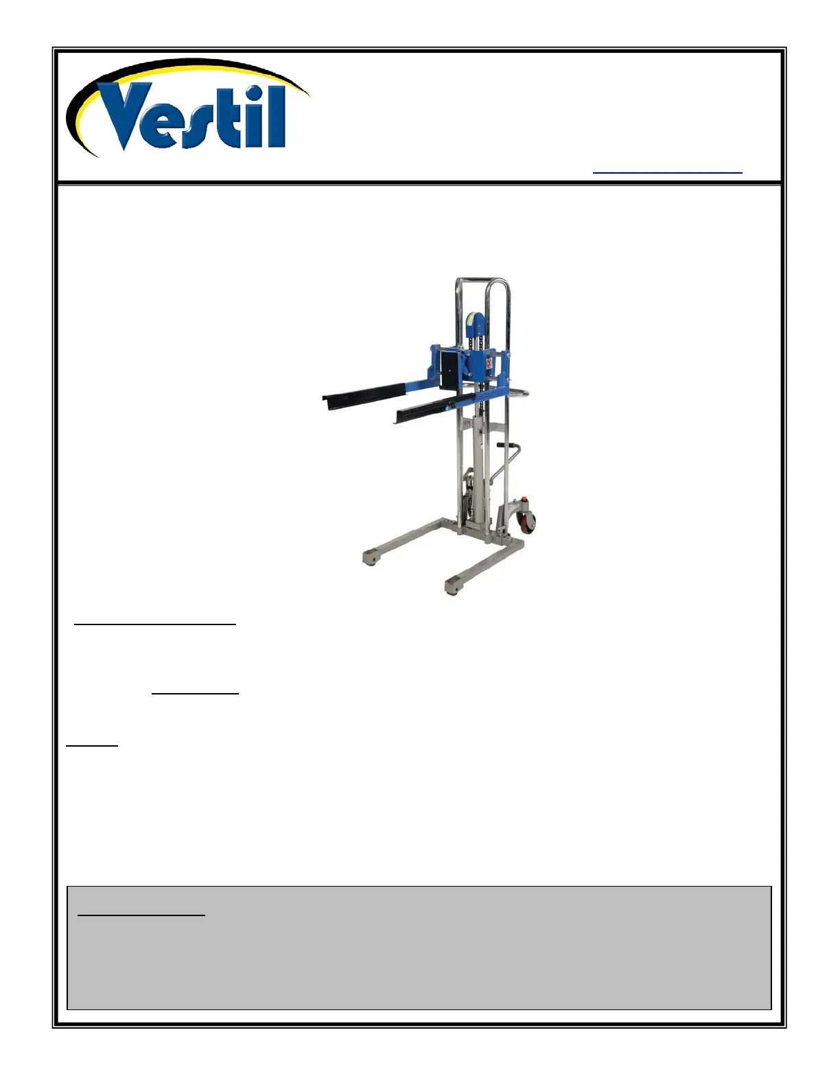 Copyright 2013 Vestil Manufacturing Corp. Page 1 of 8