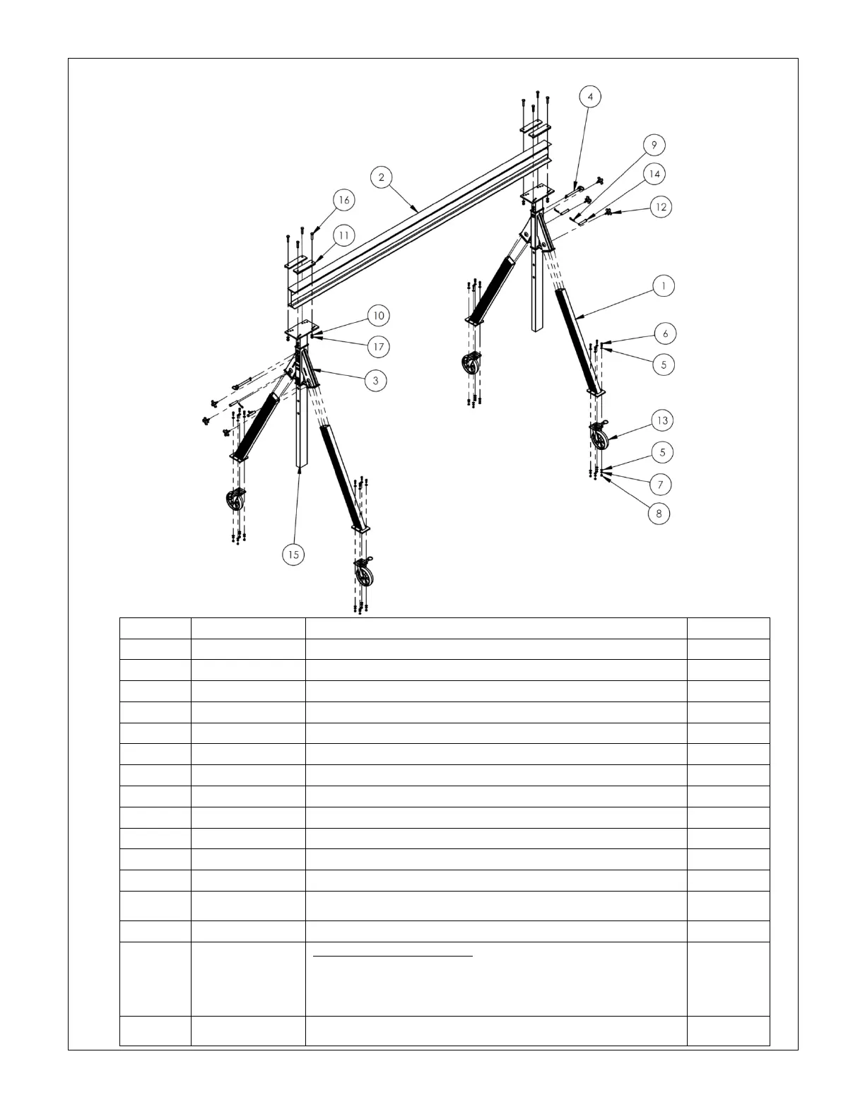 Adjustable upright weldment: (when ordering replacements, only