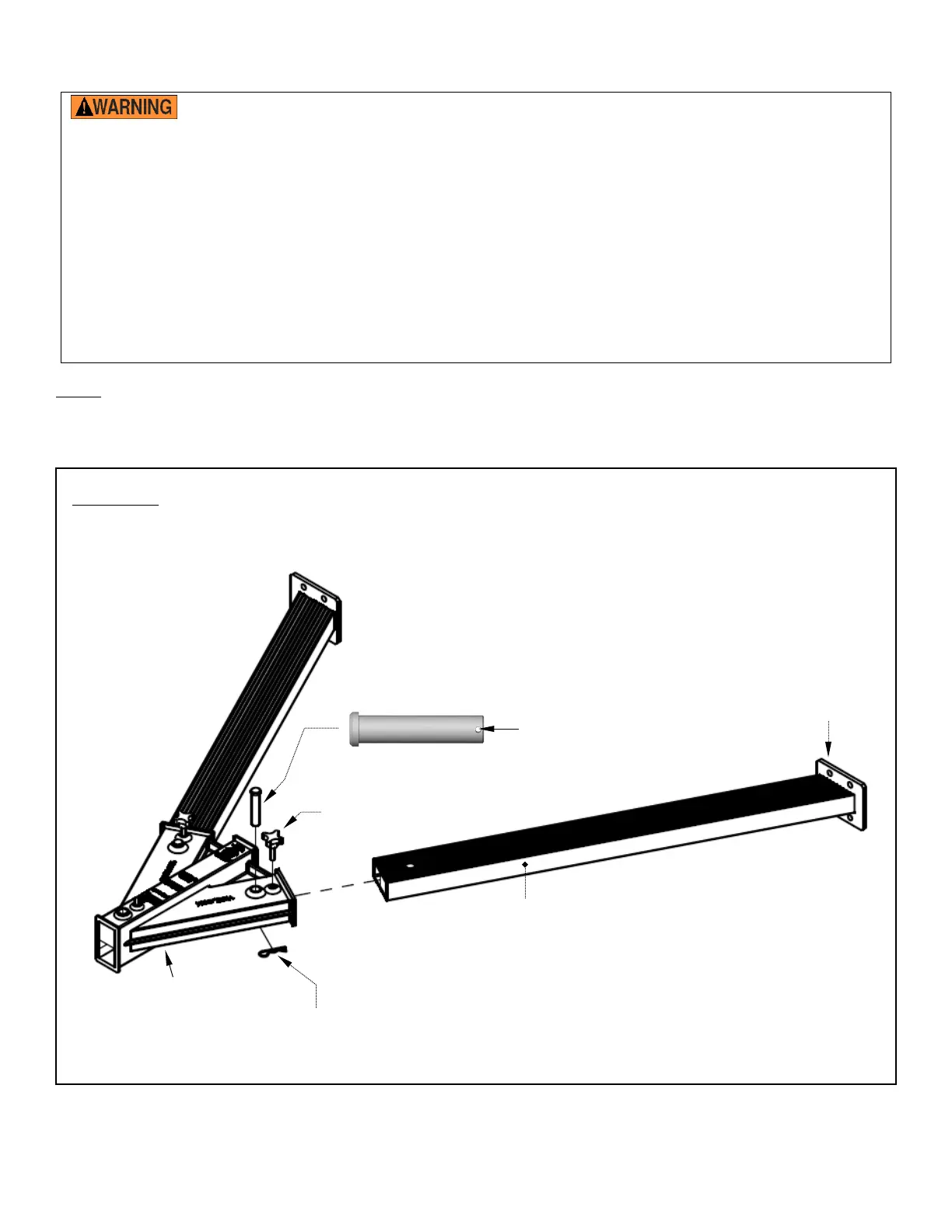 • DO NOT use the crane if any of the hardware (bolts, nuts, clamps, etc.) is damaged or missing. Contact the