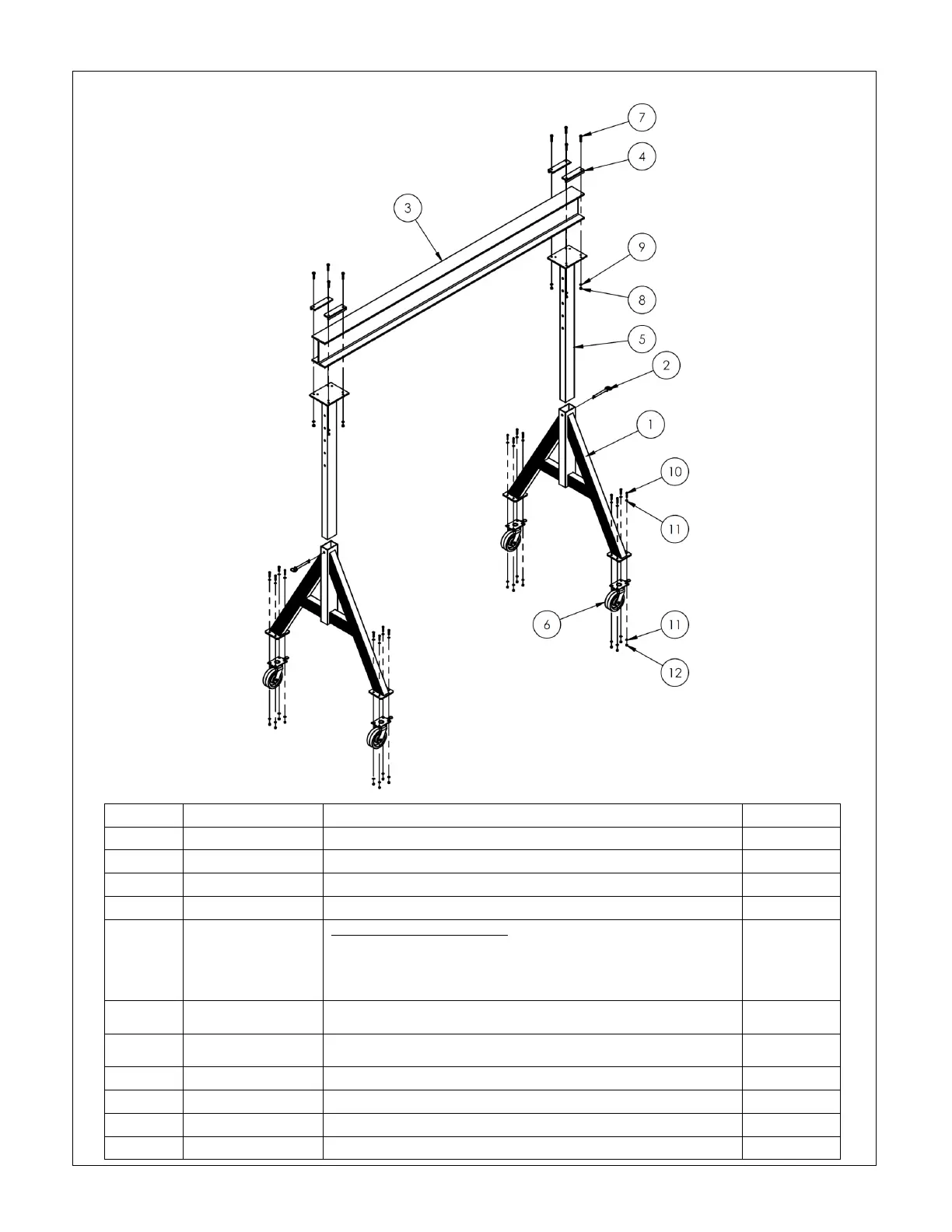 Adjustable upright weldment: (when ordering replacements, only