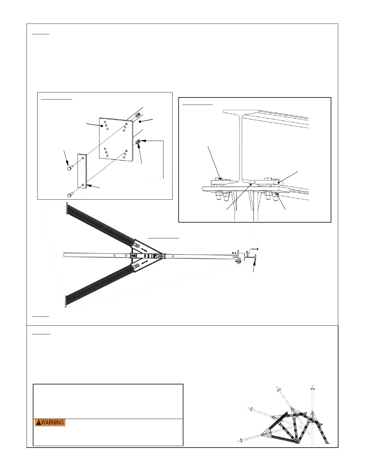 b) Is using an overhead hoist, attach the hoist chain to the center of the I-beam. Slowly raise the beam until