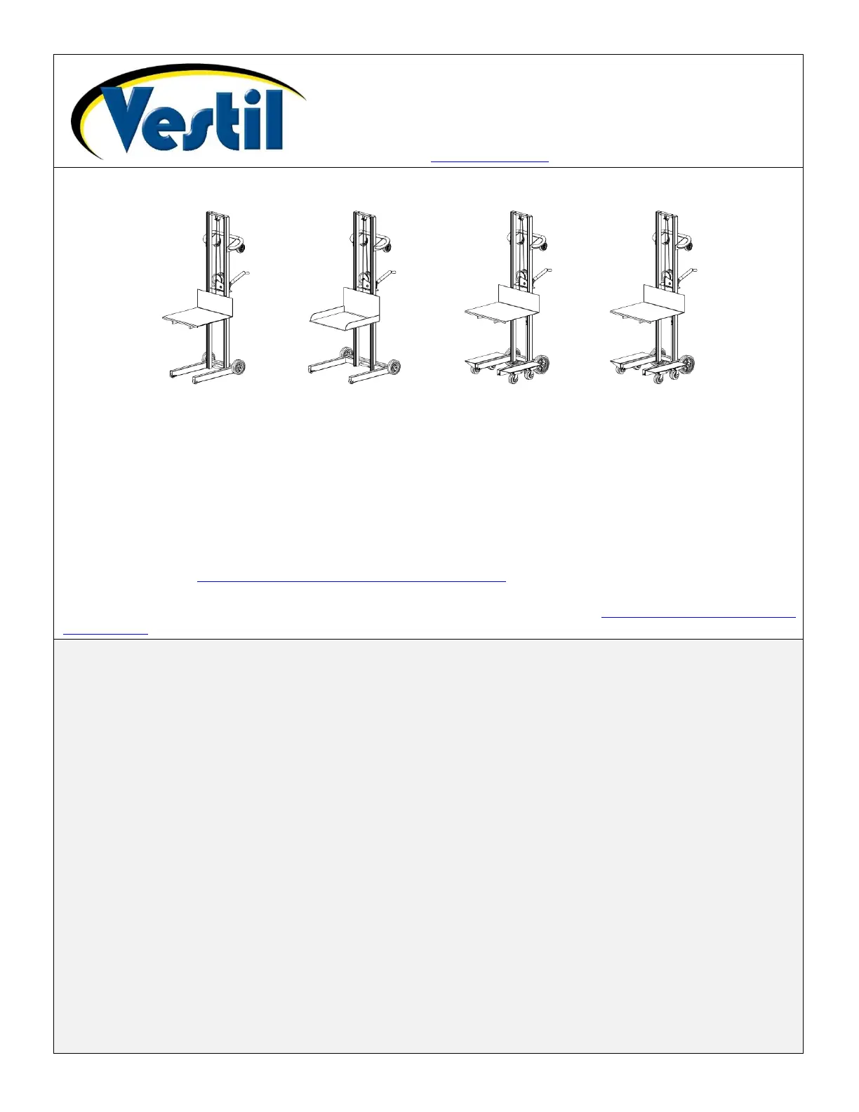 Additional copies of this instruction manual may be downloaded from https://www.vestil.com/page-