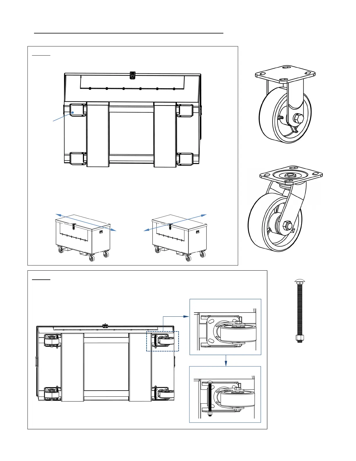 If your toolbox includes casters, then the casters must be installed before the toolbox is put into service.
