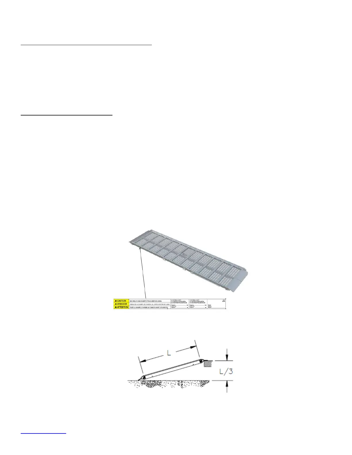Ensure that the walk ramp is capable of supporting the intended load. The ramp capacity is printed on the