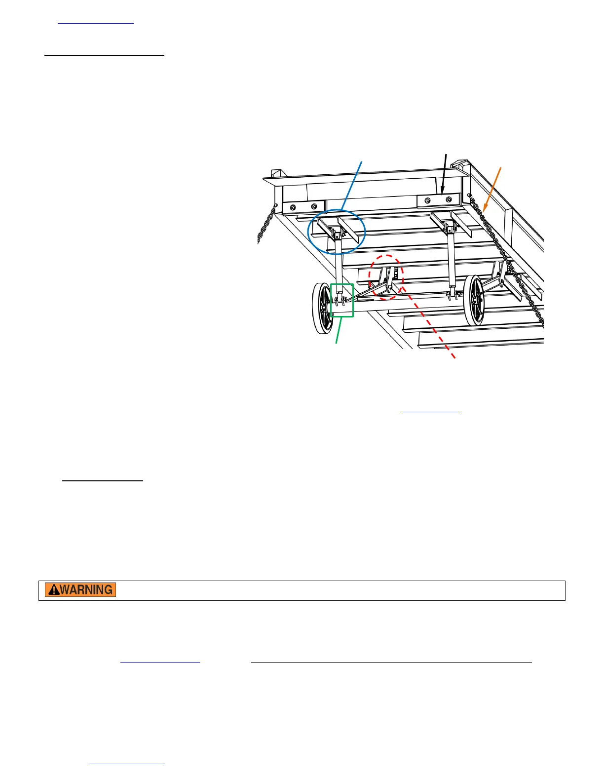 3. Tow bar assembly (see “Moving the Ramp” on p. 5): Inspect the key, wing nut, spring, fork pocket, and safety