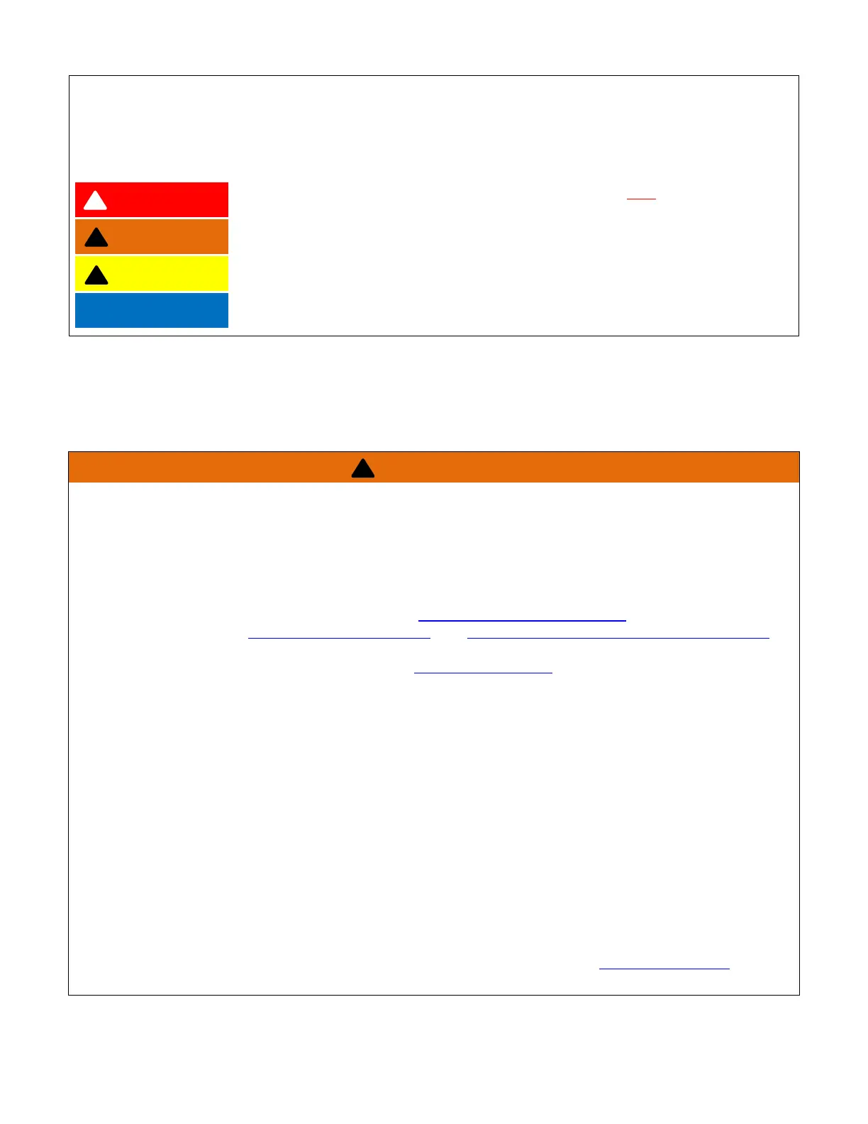 • Review the safety messages included on labeling, and in the manuals, of devices used with this bulk