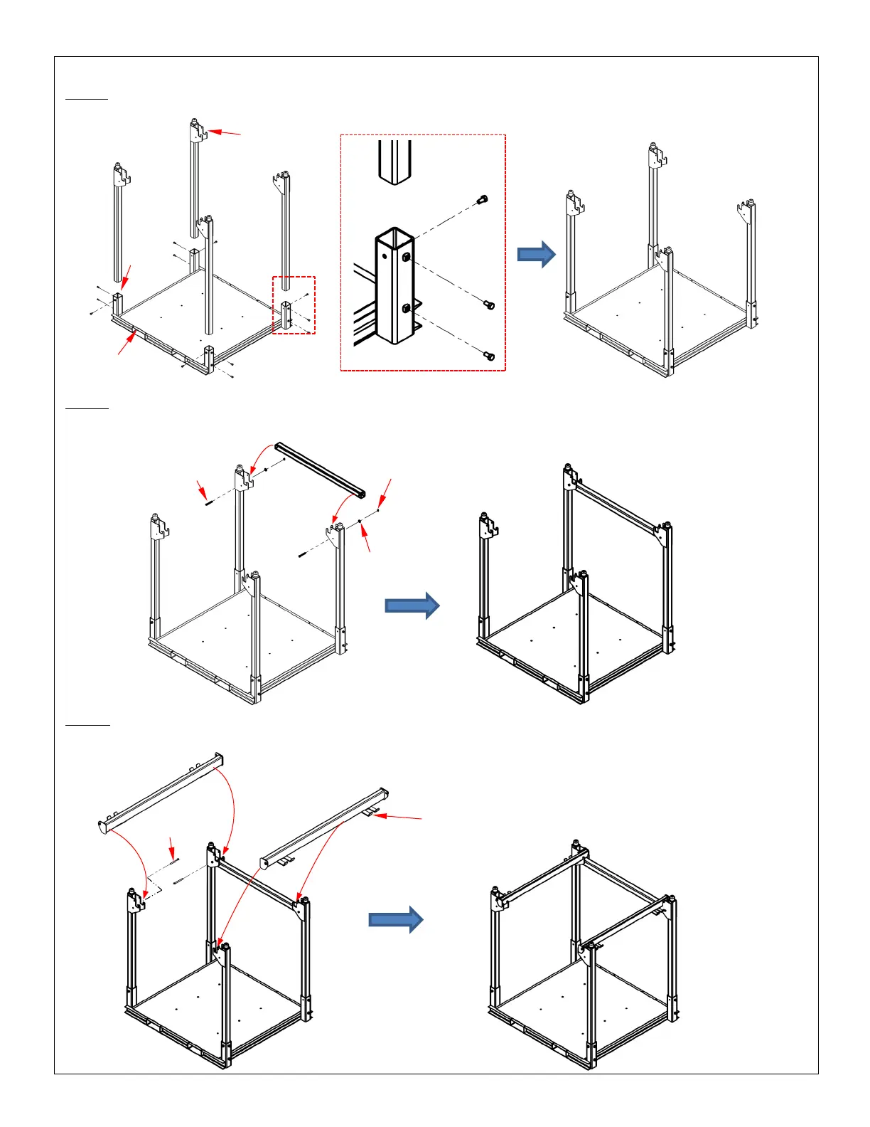Step 1: Insert posts (47-514-033) into post receivers as shown in the diagrams (below). Secure each post with