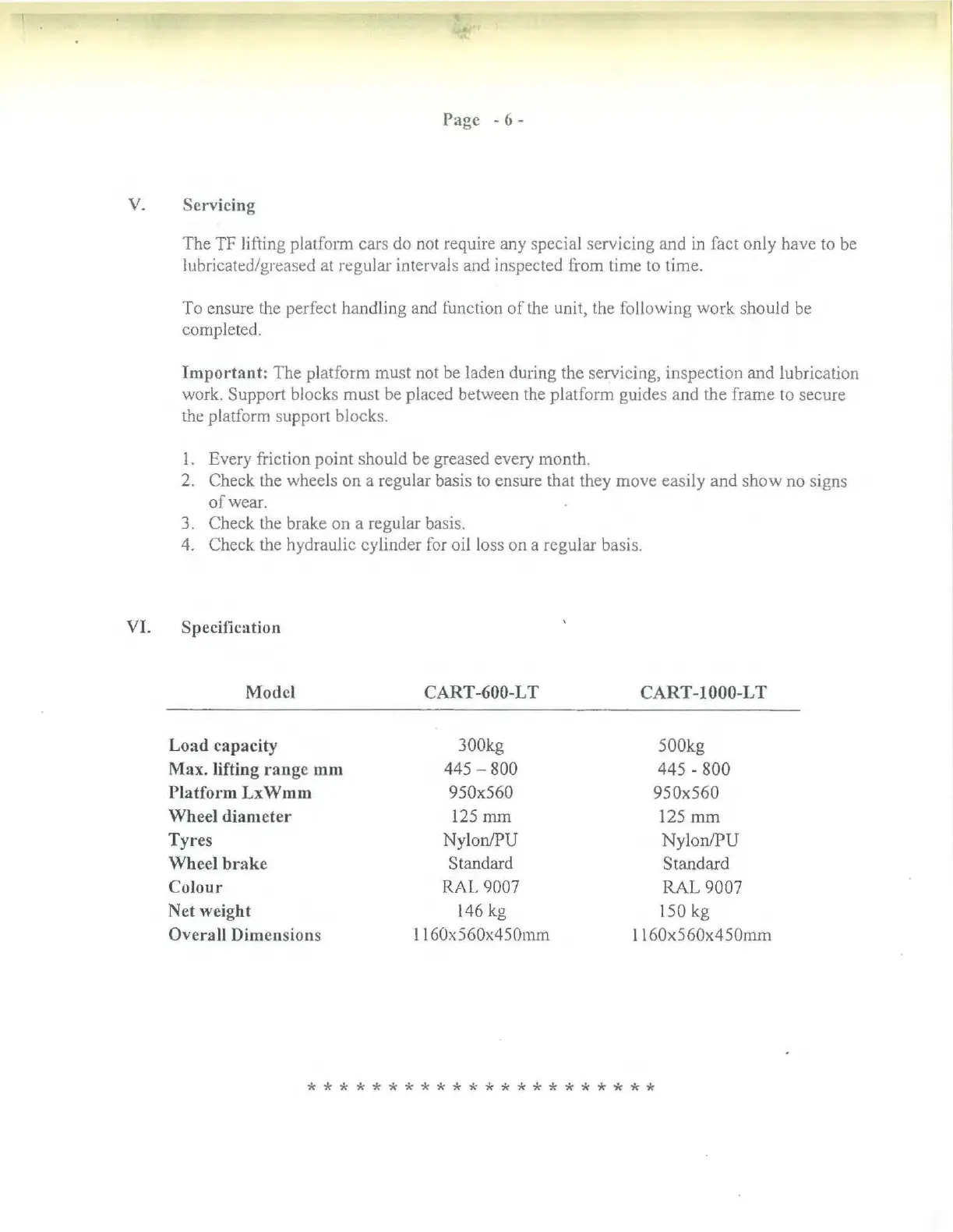 The TF lifting platform cars do not require any special servicing and in fact only have to be
