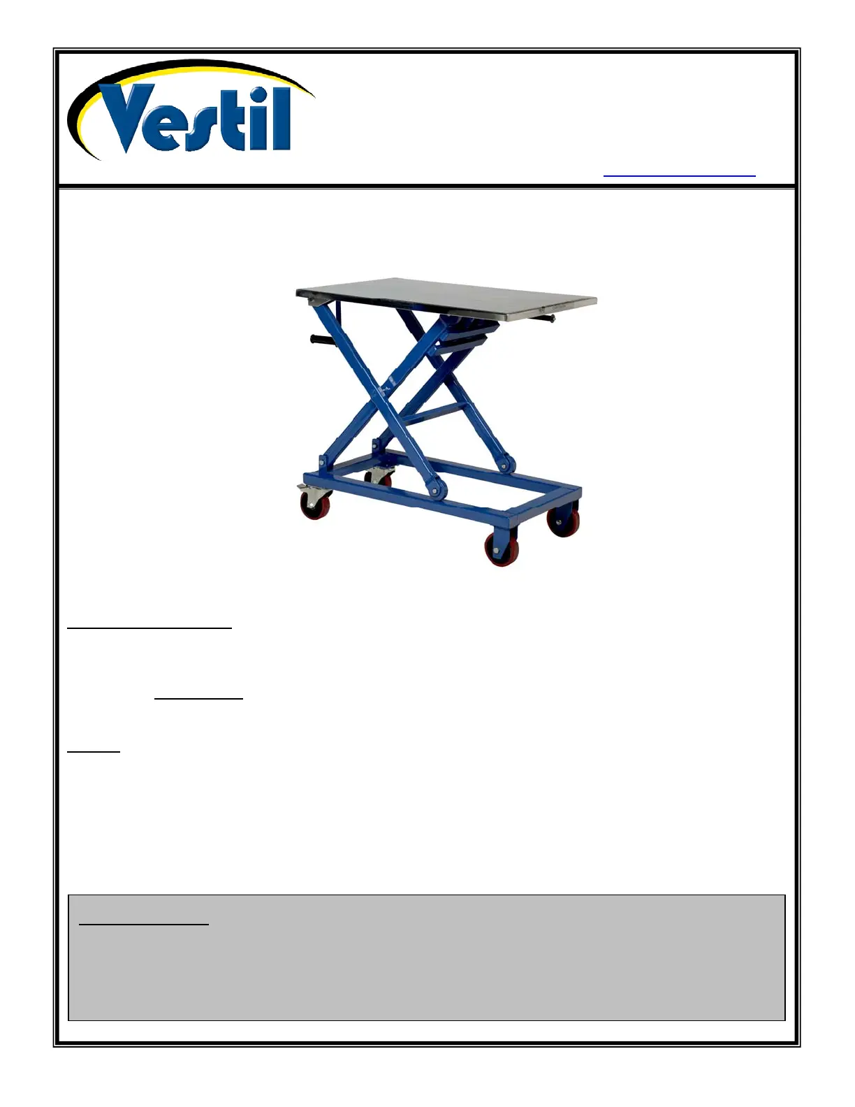 Copyright 2013 Vestil Manufacturing Corp. Page 1 of 6