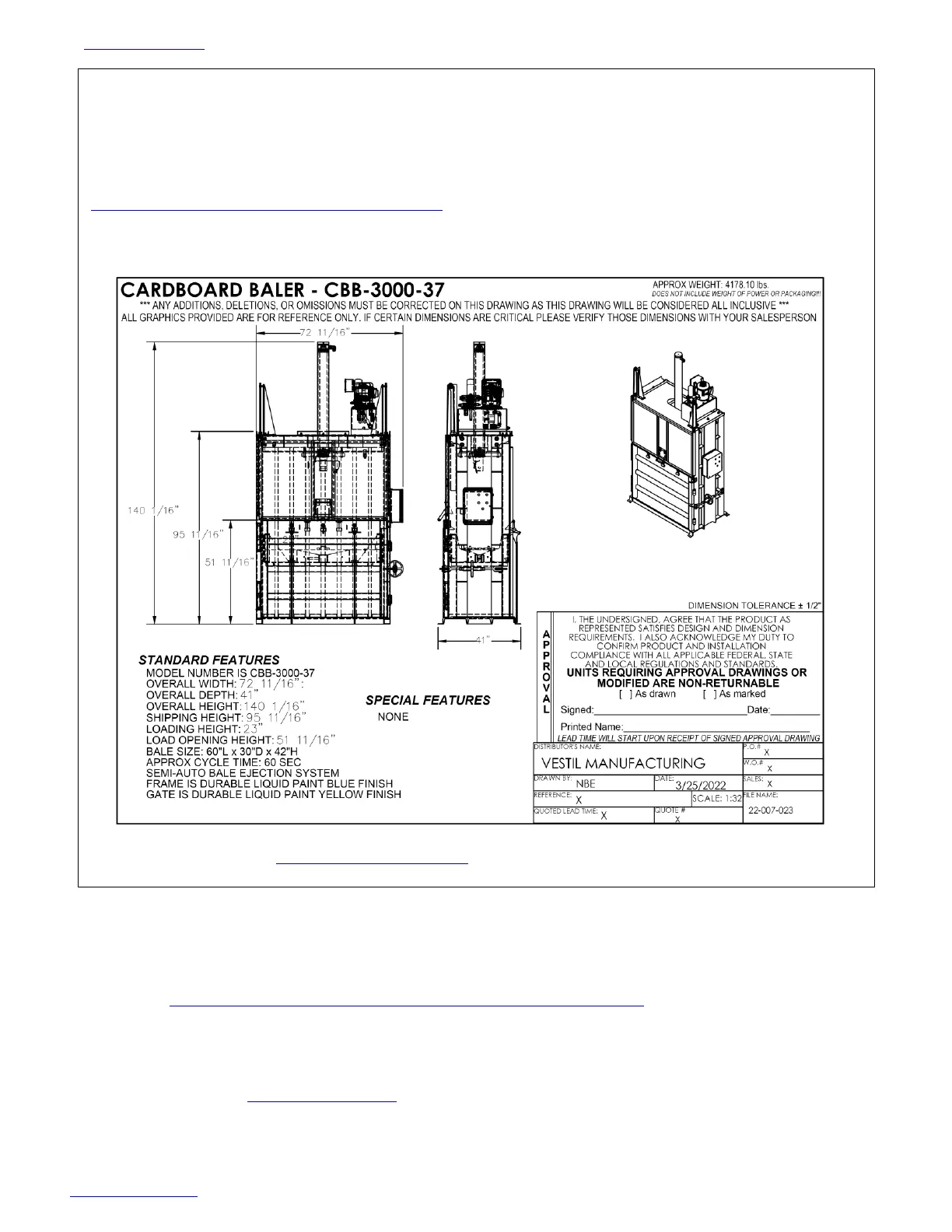specifications document for CBB-3000-37 balers is available online to anyone who visits Vestil’s