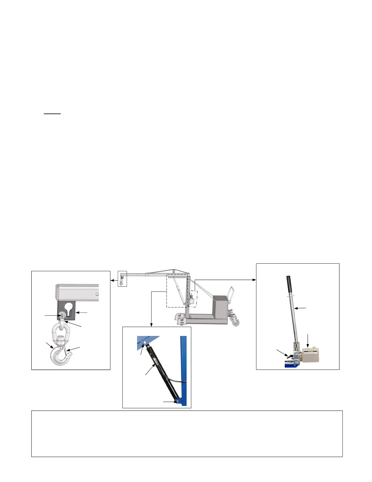 5) Carefully push the crane to transport the load. Do not leave the crane with a suspended load. Always lower